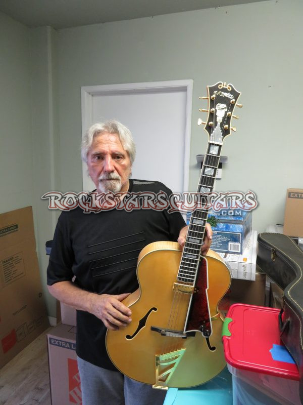 This is Geezer Butler’s D’Angelico Masterbuilt 1942 Excel Reissue, serial number 1628 024, hand-built at the Premier Builders Guild workshop in Arroyo Grande, California. These were part of D’Angelico’s high-end USA Masterbuilt series, made to be as close as possible to the original vintage guitars. The Masterbuilt 1942 Excel Reissue, introduced around 2013 and made until 2015, is a top-tier archtop meticulously recreated under the direction of master luthier Gene Baker. Produced through the Premier Builders Guild, these instruments were built using advanced techniques, including MRI scans of an original 1942 D’Angelico, ensuring exceptional historical accuracy.