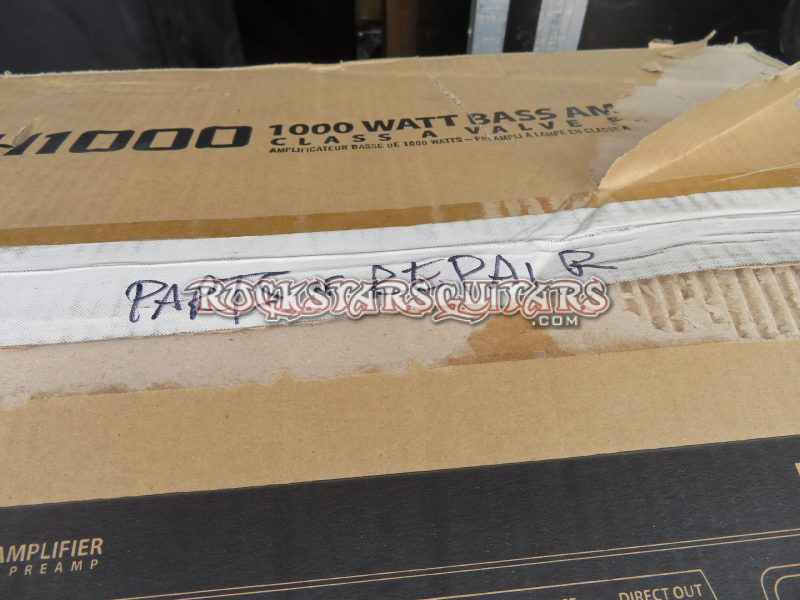 This is Geezer’s Hartke LH1000 Bass Amplifier. This amp was a spare that was used for parts only. The box has tape on it that reads “For Parts Or Repair”. The amp is labeled “Not Working” Comes with a letter from Geezer.