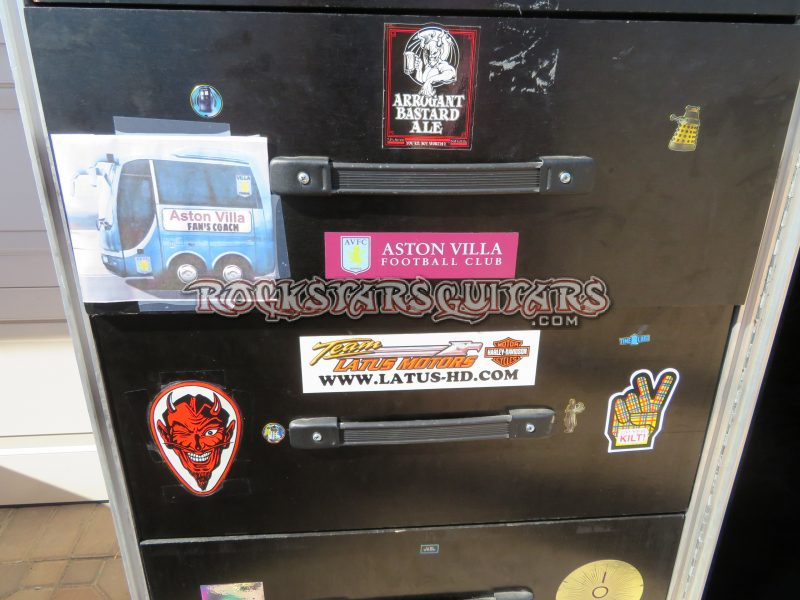 This is Geezer’s very last wardrobe case that he used from 2007-2017 on all Heaven & Hell and Black Sabbath tours up until the final show on February 4, 2017 in Birmingham, England. The case is black and is not stenciled. It has white gaffer tape that says GEEZER HOUSE.  All stickers and clippings that are displayed on the inside of the case were done by Geezer.  The case comes with a letter from Geezer.