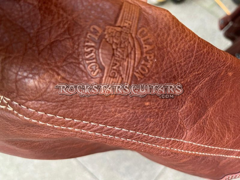 This high-quality leather jacket was made by Red Wing as part of the Clapton Classics line. It remains in very good condition and was obtained directly from a crew member. The “Clapton Classics” logo is subtly embossed on the left sleeve, a discreet and elegant detail. A well-crafted and rare piece associated with Eric Clapton.