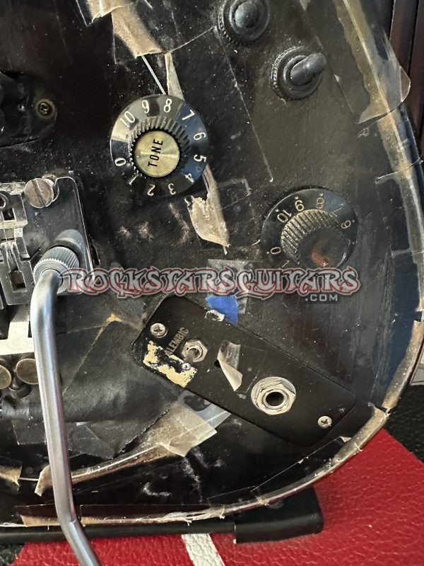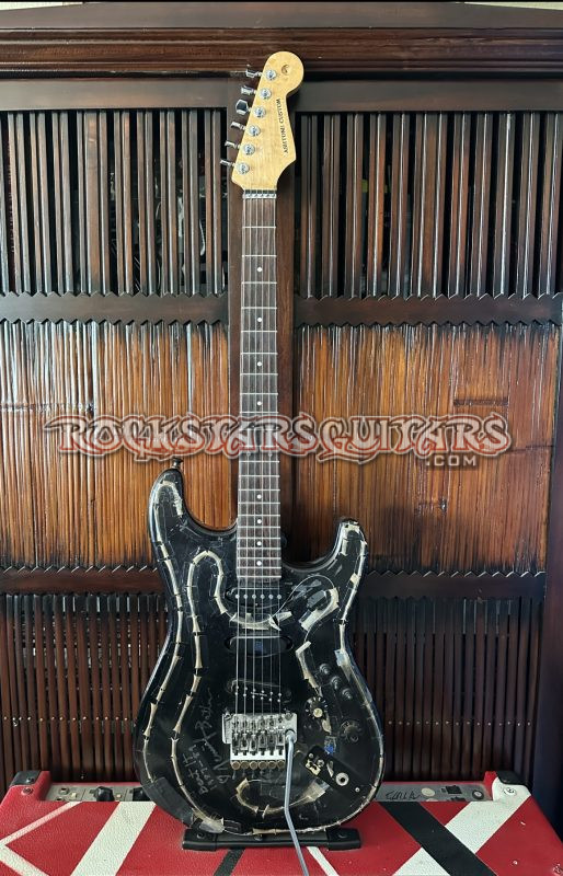 This is Jennifer Batten’s Alan Hamel Custom guitar that she used on the Michael Jackson BAD Tour in 1987 for the song “Beat It.” This is a very iconic guitar from the BAD tour and also visually stunning when the fiber optics were turned on the during her solo. Something that was never done before. The guitar was built by master builder Alan Hamel, who worked at the Fender Custom Shop from 1992 through 2001. Alan gave this guitar to Jennifer in exchange for doing a guitar clinic in a shop that he was associated with in around 1985 or ’86.