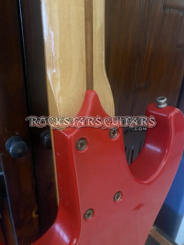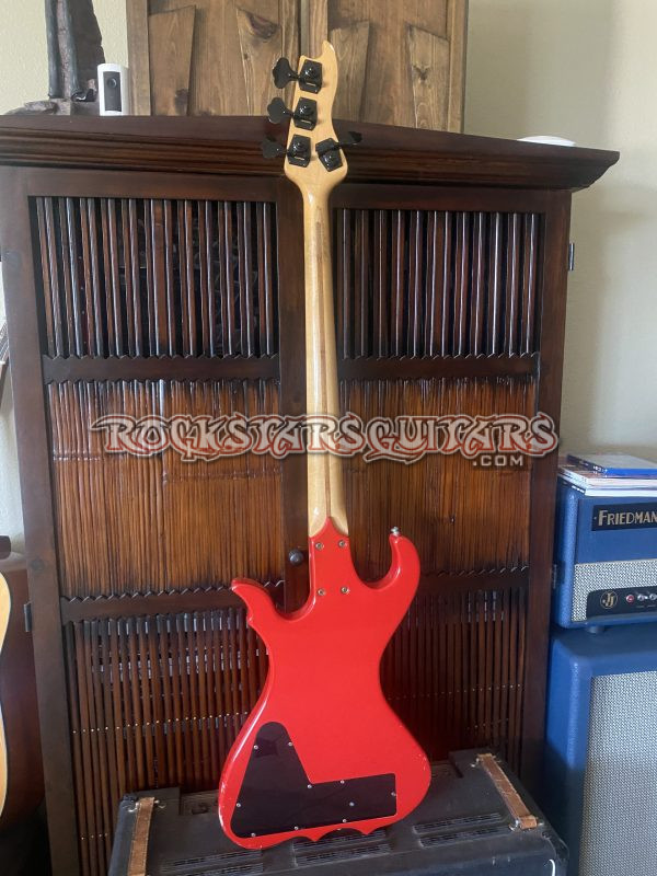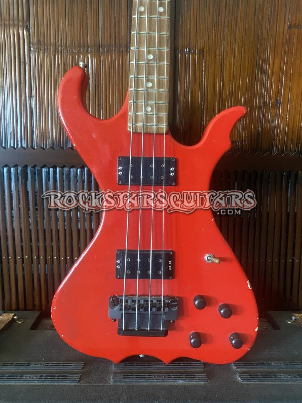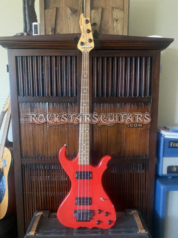 This red-finished 1984 Mitre Mongoose bass was Geoff Nicholls’ personal bass, used in the studio with Quartz. It was later played by Derek Arnold during a 1996 Quartz interview for Birmingham Cable TV. These basses are exceptionally rare, as Mitre was a short-lived guitar company operating only from 1983 to 1985.