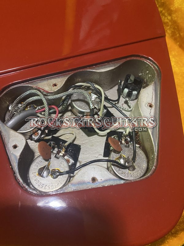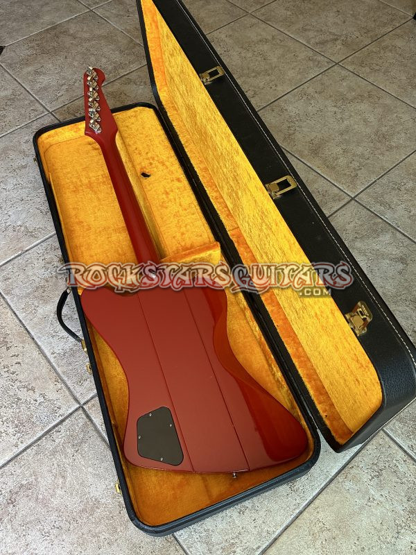 This is an incredibly clean all orginal 1964 Gibson Firebird III in Ember Red, serial number 202505. I purchased this directly from the original owner’s family. The guitar had been stored away since the early 1970s after the original owner passed, and it’s remained remarkably well-preserved ever since. Condition is outstanding for its age, with very minimal signs of wear. The control cavity plate had never been removed until we took it off for photos, which really speaks to how untouched and original this example is. It comes with the original case, which is also in excellent condition. Firebird IIIs from this era are getting harder to find, and examples in Ember Red—especially in this kind of clean, original condition—are becoming increasingly scarce.